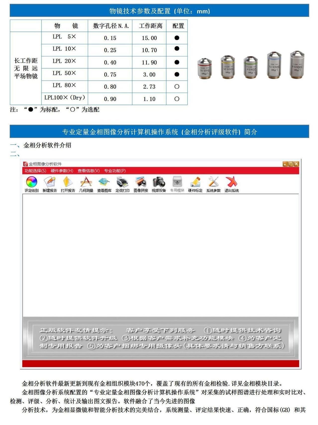 ● 采用无限远光学系统设计,平场消色差金相物镜,大视野、高眼点,分辨率高、成像质量清晰;
