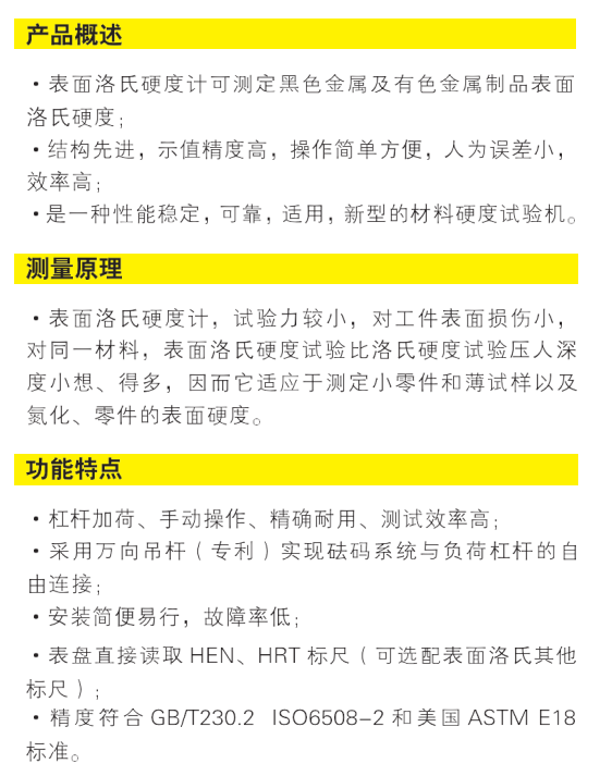 表面洛氏硬度计可测定黑色金属及有色金属制品表面洛氏硬度;