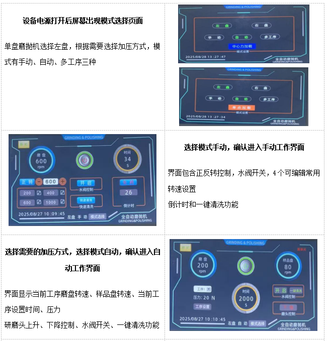 MXC251-A是一款触摸屏控制、单点气动、单盘自动金相磨拋机。操作方便快捷,适用于金相试样粗磨、精磨、粗抛、精抛等各种金相加工全过程。一次性可固定六个样品,每个样品单独施加磨抛压力,触摸屏界面,高度自动化,人性化,极大程度减少人力投入,智能磨抛