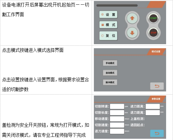2. 切割长度:在自动&脉冲模式下,设定切割片Y向前进距离(0-220mm可调)