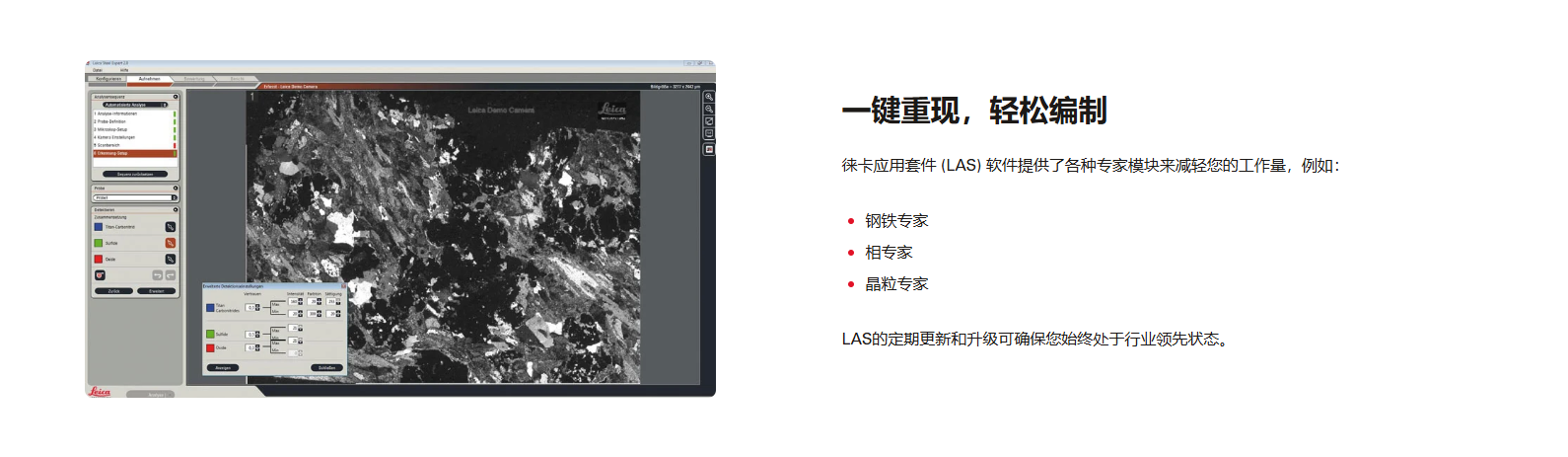 在竞争中保持领先是您事业前进的动力。无论您从事金相学、医疗设备制造还是微电子领域,焦距都至关重要。您可根据需求自行定制徕卡这款高度的倒置式支架。将徕卡优异的光学性能、丰富的复位模式以及绘图绘图的软件集于一身,有助于加速您的工作流程。