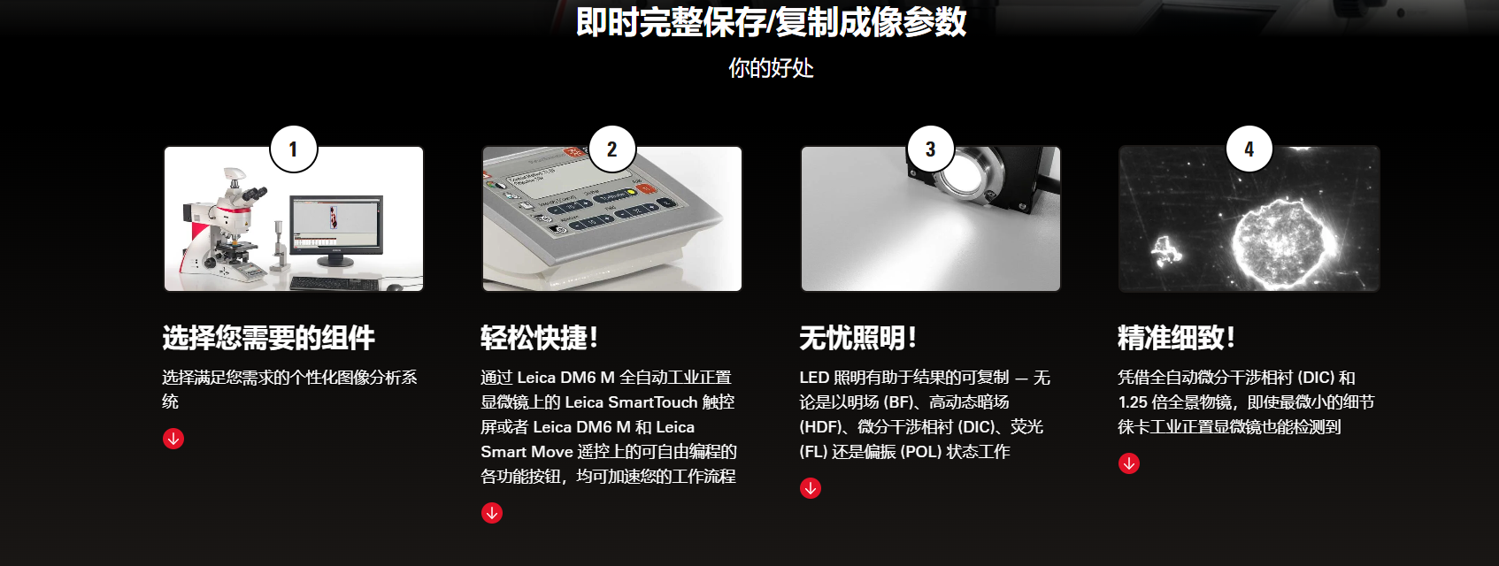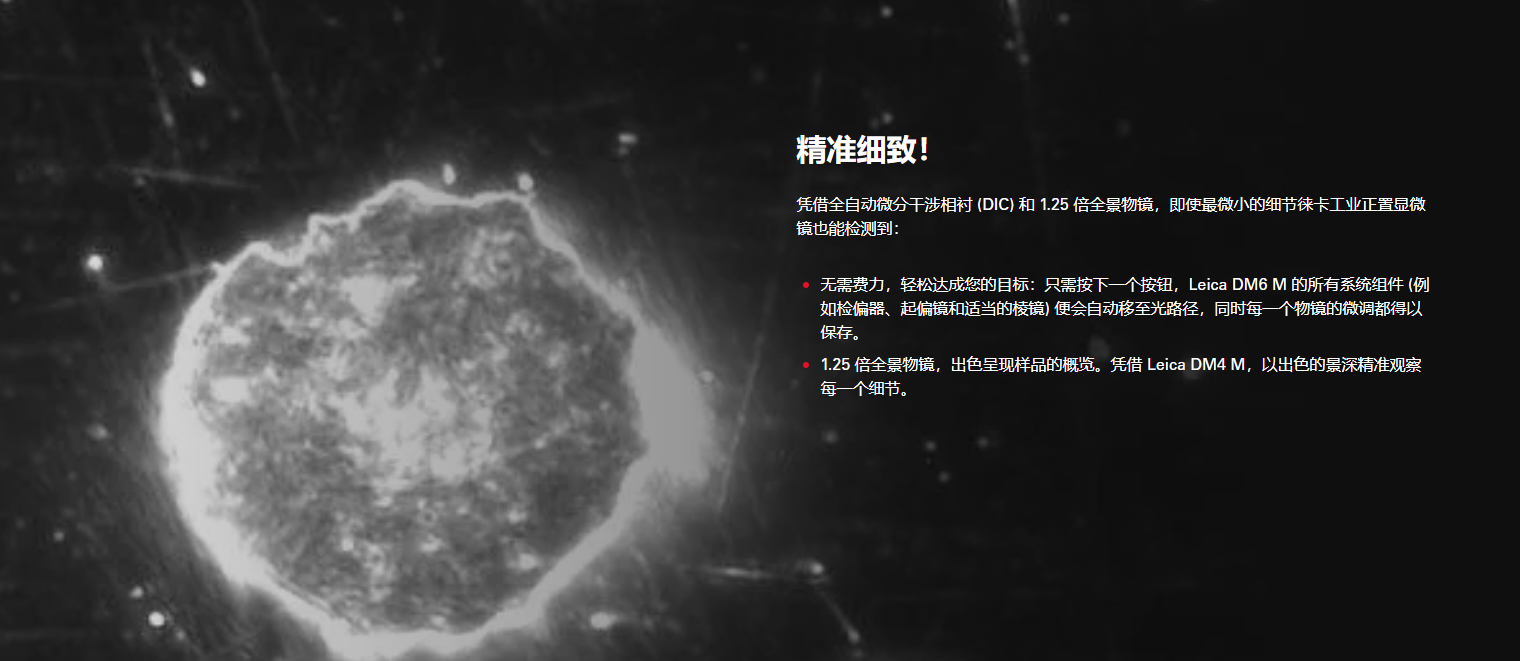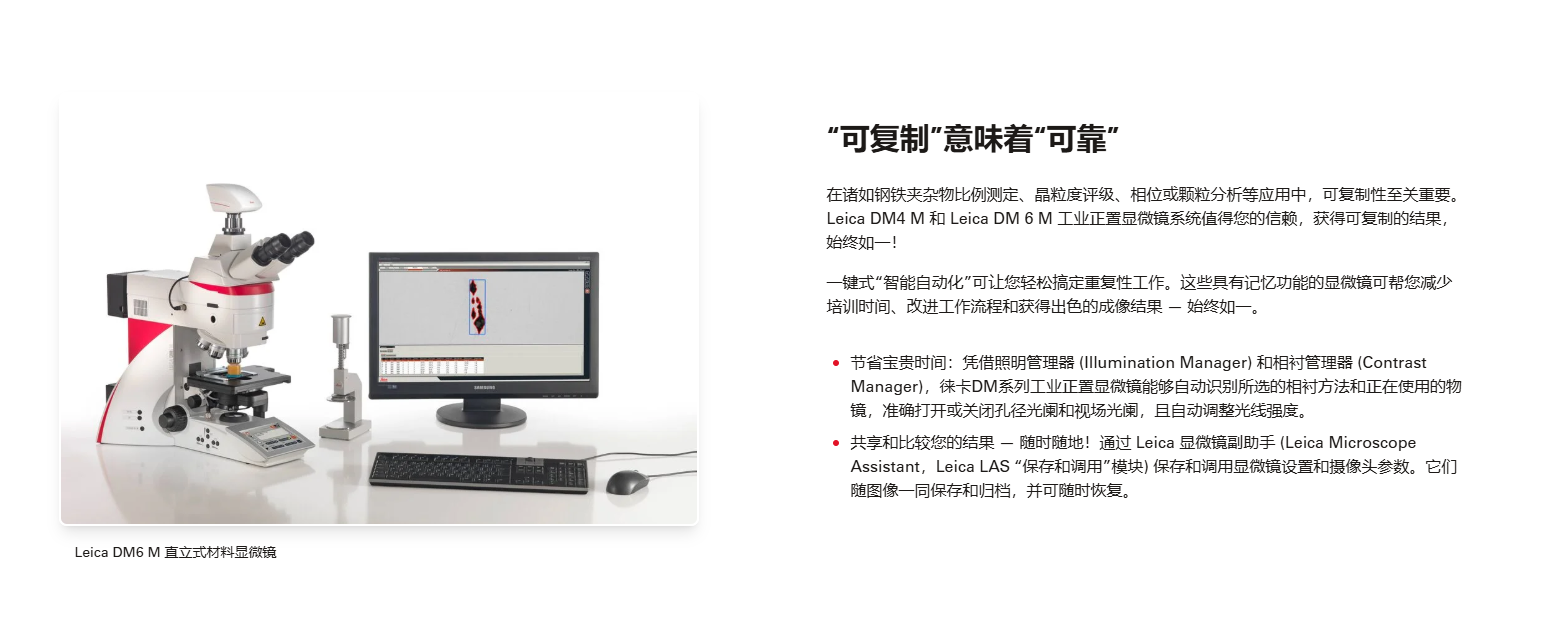 Leica DM4 M & DM6 M 工业正置显微镜不仅可满足快速概览样品和详细检查样品的需求,独特、可靠的记忆功能可即时复制成像参数,轻松搞定重复性工作
