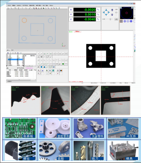 可对点、线、圆弧、圆、矩形、椭圆、键槽(腰型特征)、开曲线、闭曲线、平面、圆柱、圆锥、 球等几何元素进行测量。当 Z 轴增加测头或激光位移传感器等设备后还可对 3D 图形元素如圆柱、 圆锥、圆球、以及三维空间内的面进行测量。