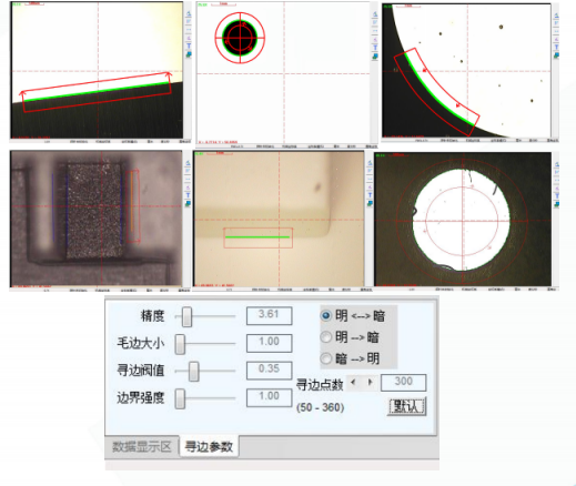 能够抓取很弱的边缘,可任意设定寻边方向,避免寻边错误,灵活设置寻边参数,去除杂点及毛边的影响。