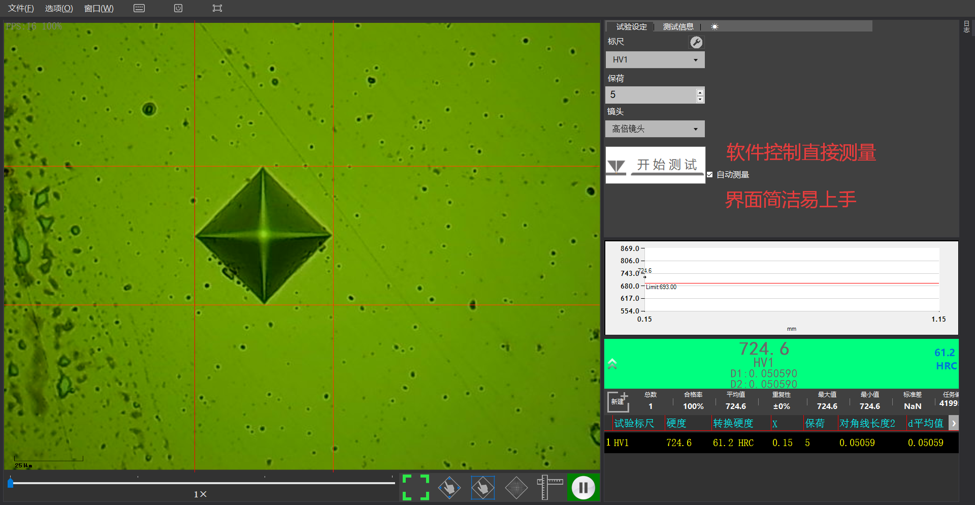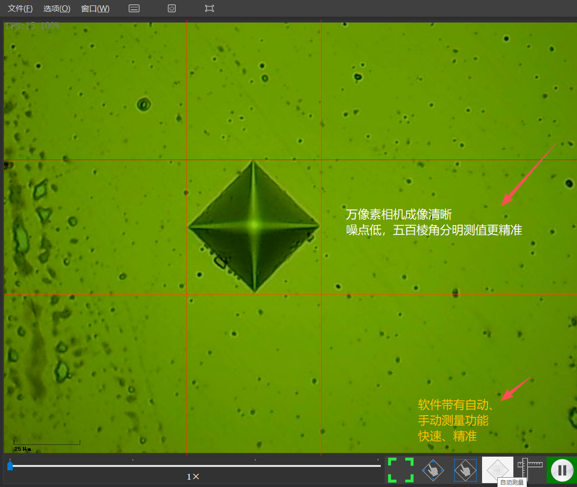 全自动维氏硬度图像测量系统,集成了光学成像、机械位移、电子控制、数字成像、图像分析、计算机处理等多种新专业技术,通过计算机主机实现对显微维氏硬度计和自动载物台的控制,并将硬度压痕数字化成像在计算机屏幕上,再通过自动读数、手动读数等手段,准确测量金属及部分非金属材料及各种膜层、镀层的显微硬度、硬化层深度、膜层厚度、两点间距等。还可拍摄金属表面形貌并进行固定倍率打印等。这一系统,突破了传统硬度的测试方式,实现了全自动、高精度、高重复性的硬度测试,是材料分析的重要设备。
